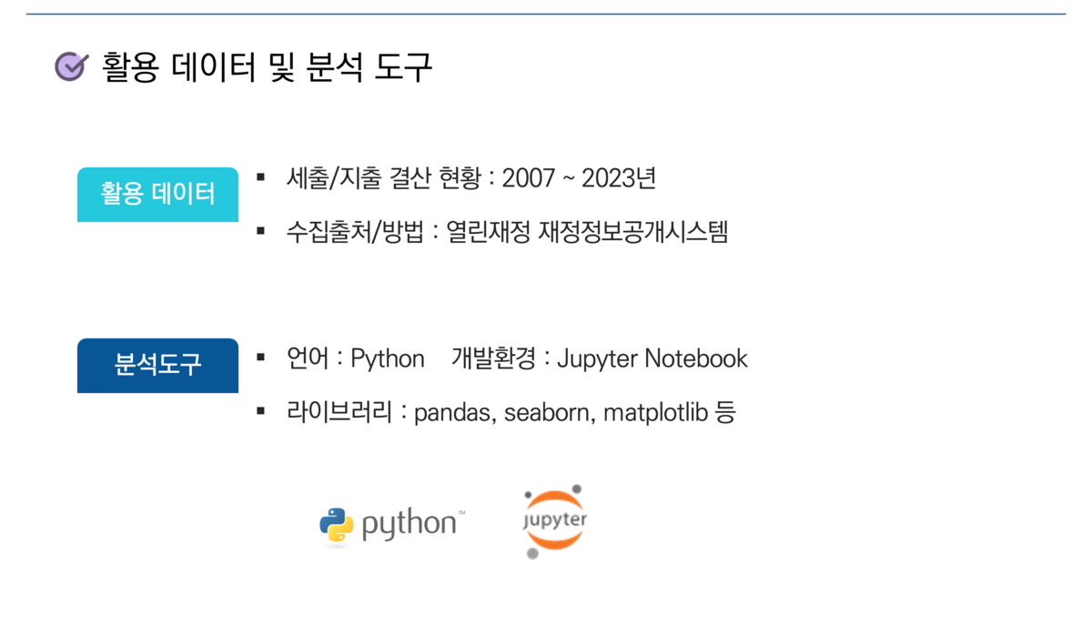 ※ 분석에 사용된 데이터셋은 '열린재정 재정상세통계'(바로가기)에서 다운 받으실 수 있습니다. (* 상세 내용은 첨부파일 '가이드'에서 확인 가능합니다.) 첨부파일