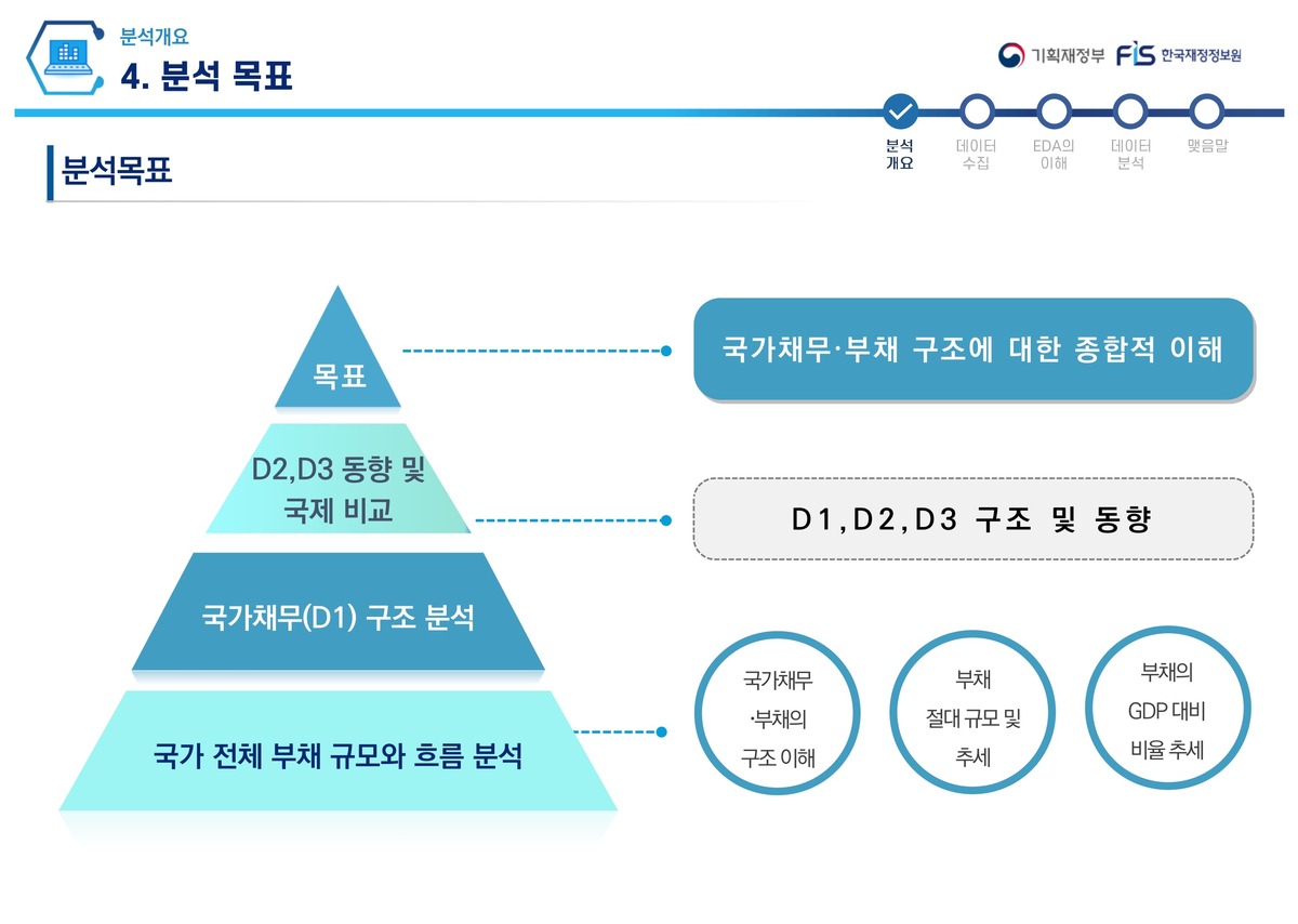 국가채무 구조에 대한 이해를 목표로 지표별 추이 비교 및 해석을 통해 재정의 이해를 높이기 위함